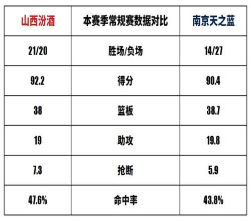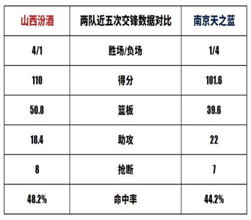 山西汾酒与南京天之蓝历史上一共交手29次,山西汾酒20胜9负。本赛季两队交手1次,山西汾酒1胜0负。