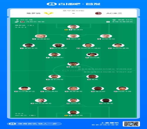 AC米兰替补:37-皮塔雷拉、1-泰拉恰诺、5-德温特、2-埃斯图皮尼安、27-奥多古、30-亚沙里、8-奇克、4-里奇、56-萨勒马科尔斯、9-菲尔克鲁格、7-希门尼斯、18-恩昆库